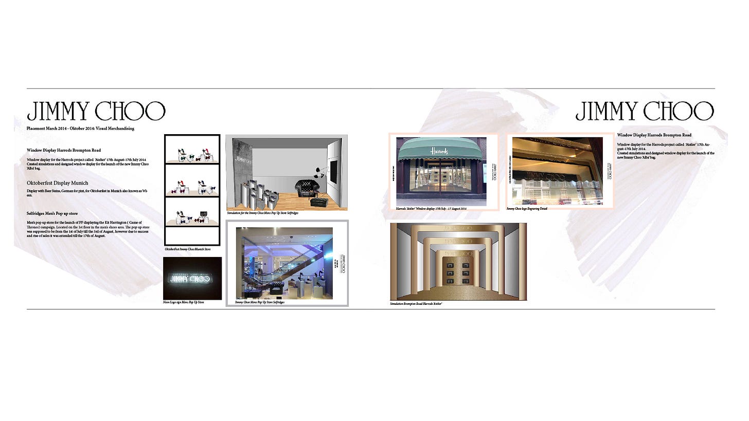 I then ended up working for Jimmy Choo (also meeting the genius himself) and working with another Creative Prodigy, Nicholas Kirkwood.